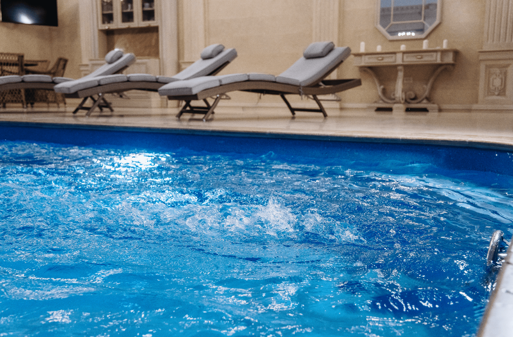 Покрытие 4D «Дианит» - таинственный и магический цвет голубых нефритов. Вода бассейна с покрытием «Дианит», отличается особенным «свечением» и бархатным переливом.